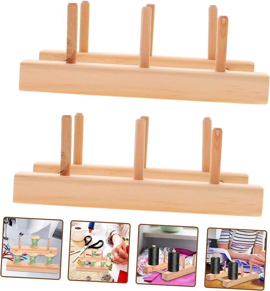 2pcs Household Thread Holder Embroidery Tools Organizer Desktop Wood Bracket Sewing Yarn Storage Stand Sewing Bracket for