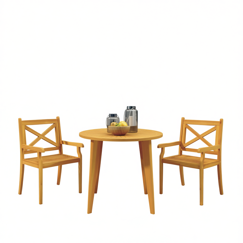 Solid Wood Acacia Patio Dining Chairs Garden Set 2 Seater Outdoor Furniture Durable Traditional Design