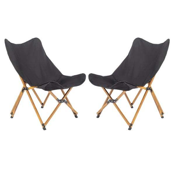 2pcs Ultra-Light Aluminum Frame Wood Grain Folding Camping Chair Portable Picnic BBQ Fishing Stool with Black Accent
