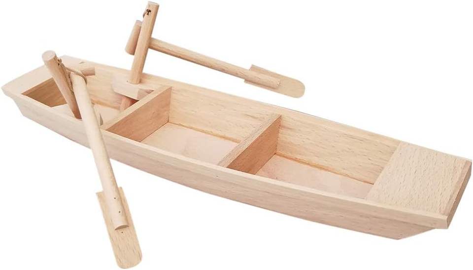 2pcs Unfinished Natural Wood Craft Project Wood Boat with Oars Small Boat Model Dollhouse Nautical Ocean Home Office