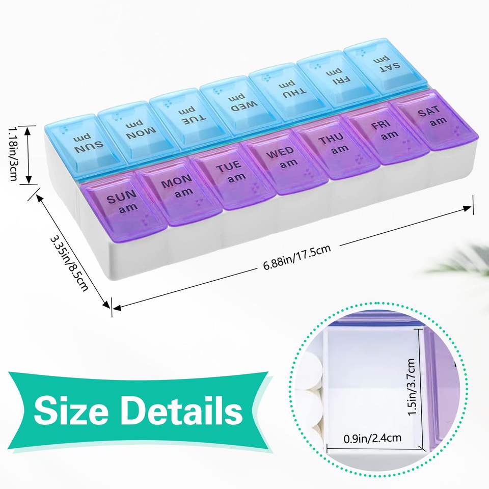 2pcs Weekly Pill Box Organizer 7 Day AM/PM Case with Removable Medicine Pill Storage Boxes