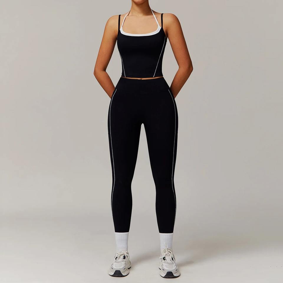 2pcs Women Yoga Set Gym Fitness Workout Tracksuit Yoga Sportswear Flared Trousers And Thin Shoulder Strap Stretch Sports Bra