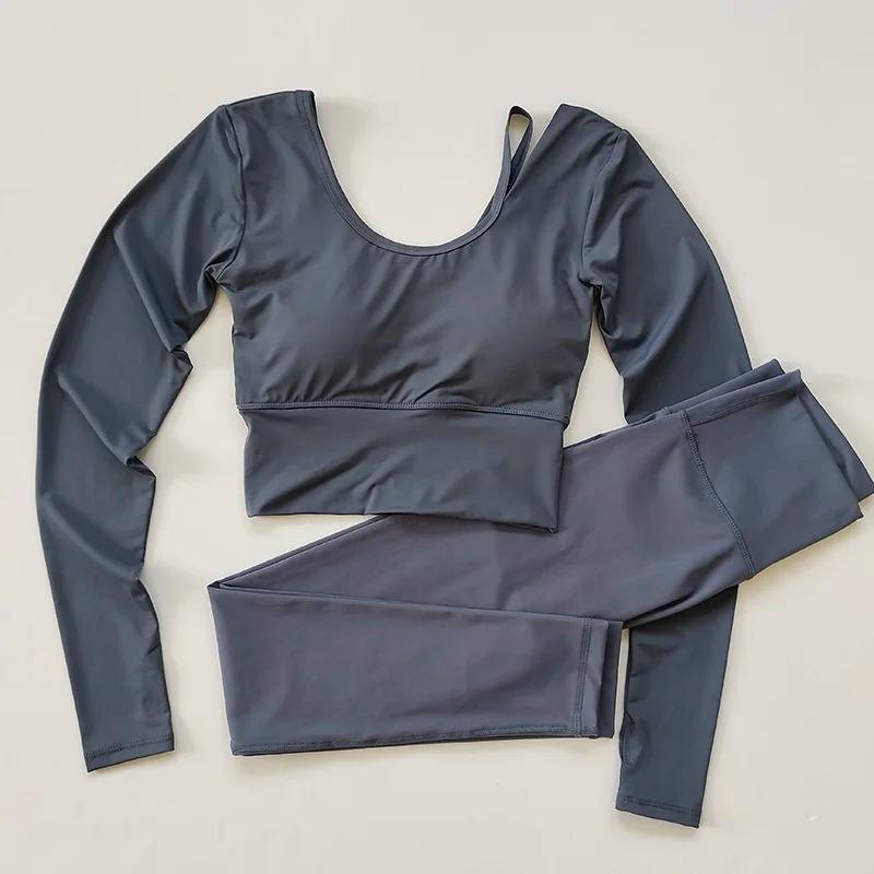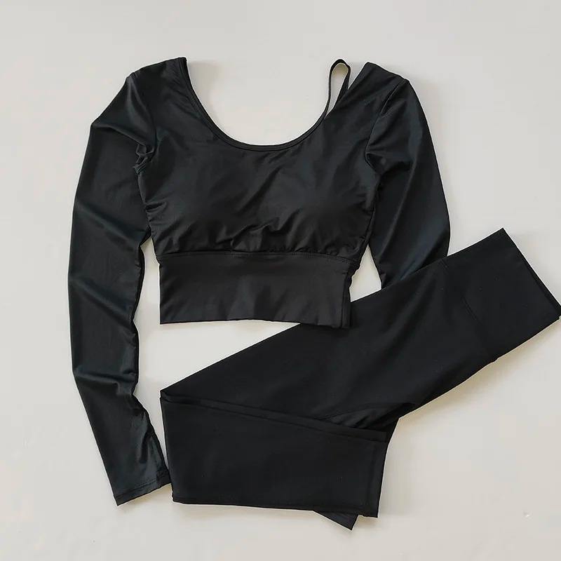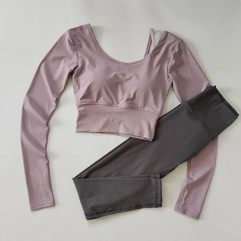 2pcs Women Yoga Set Sport Suit Gymwear Workout Clothes Long Sleeve Gym Crop Top High Waist Leggings Fitness Sports Set Yoga Wear