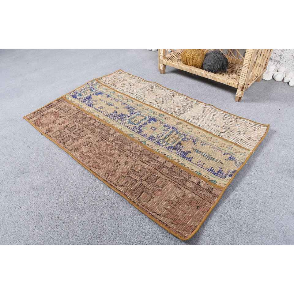 2x3 ft Vintage Rug, Turkish Rug, Brown Striped Wool Rug