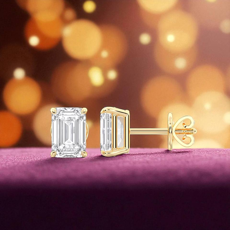 3.00 CT E-F/VVS-VS Emerald Cut Moissanite Stone Four Prong Set Stud Earring Made in Solid Gold For Unisex