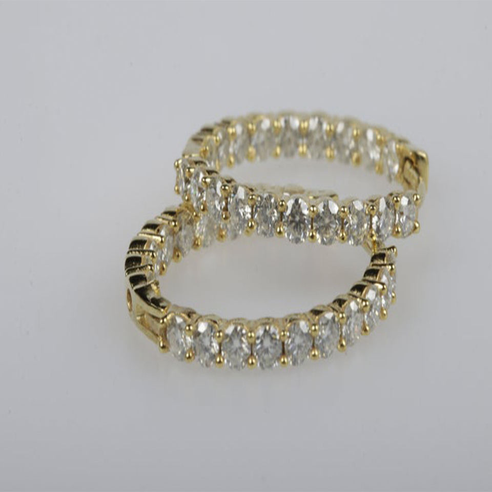 3.00 MM Each White Round Cut Moissanite Hoop Earrings 14K Yellow Gold Plated Earrings