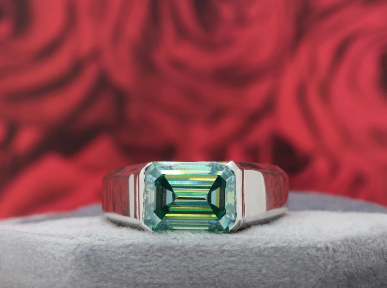 3.17 CT Blue Color Ererald Cut Moissanite Solitaire Men's Ring Engagement and Wedding Ring for Men's Fashion Jewelry