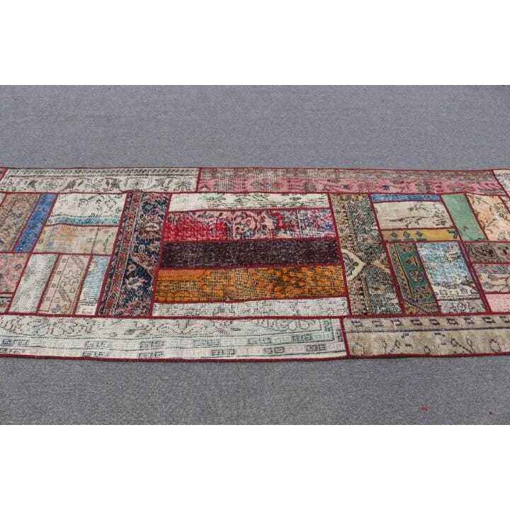 3.1x8.7 ft Rug, Turkish Vintage Rug, Red Patchwork Wool Rug