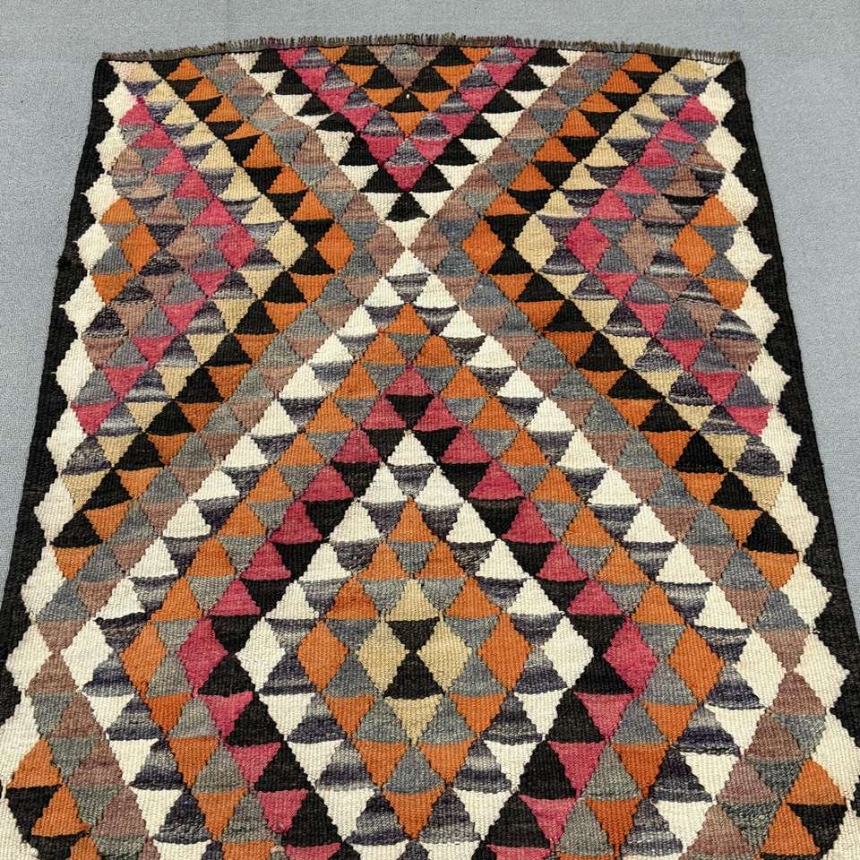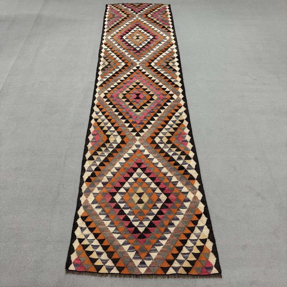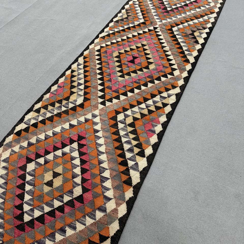 3.2x12.2 ft Rug, Runner Vintage Rug, Orange Kilim Bordered Rug