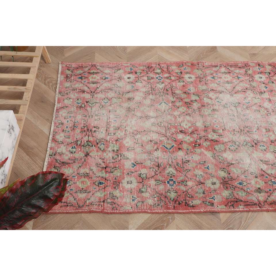 3.2x5 ft Turkish Rug, Red Abstract Vintage Wool Rug