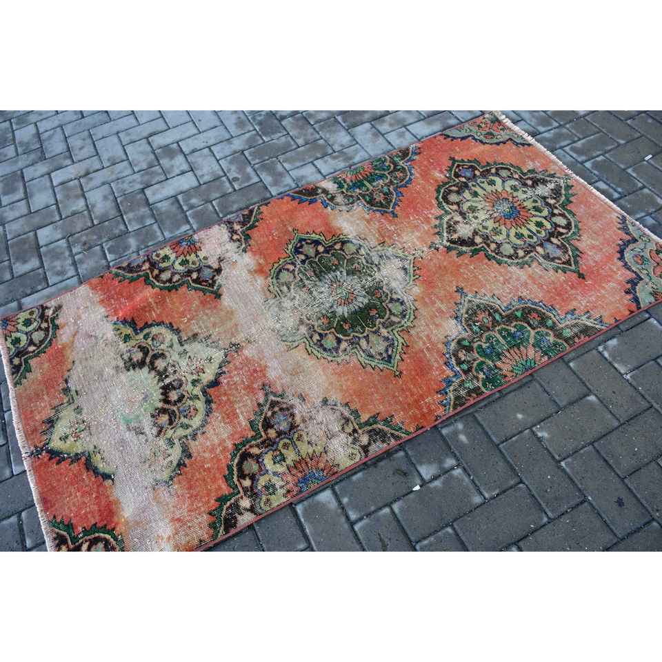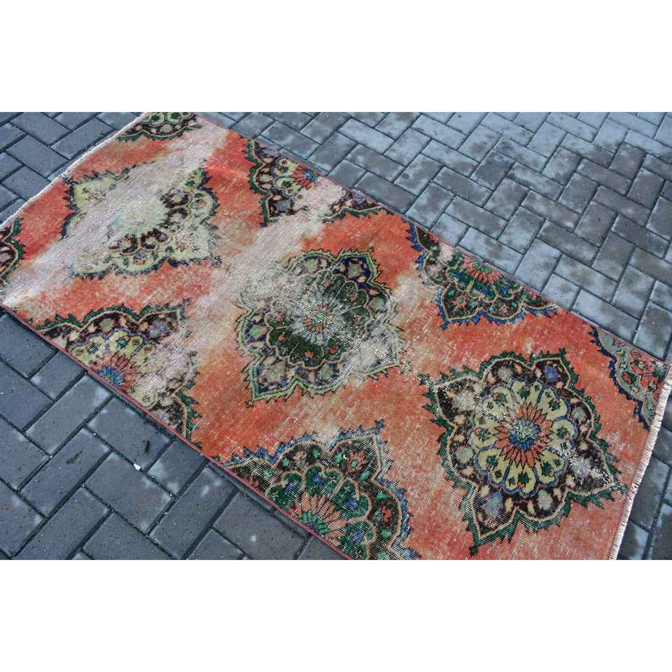 3.2x6.2 ft Rug, Turkish Vintage Rug, Red Blue Bordered Wool Rug