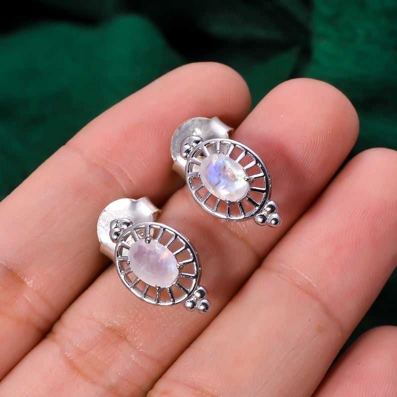 3.3 Gram Silver Studs Earrings,92.5 Sterling Silver 0.7"Long Rainbow Moonstone Luxury Earrings Gift Party Stone