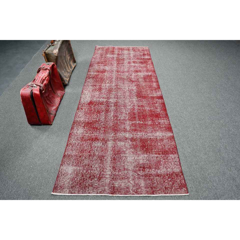 3.3x9.7 ft Turkish Rug, Red Plants & trees Vintage Rug Wool