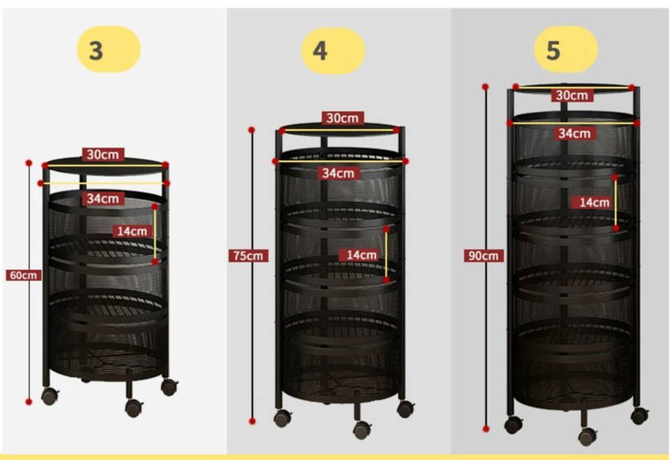 Product name:3/4/5 Tier Multifunctional Round Rolling Cart Storage Baskets