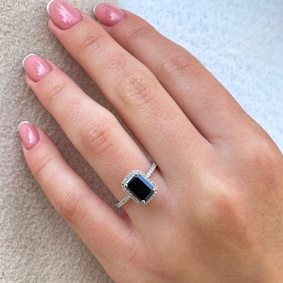 3.50 Carat Emerald Shape Natural Black Diamond Wedding Ring 14K White Gold Solitaire Accent Engagement Black Diamond Ring