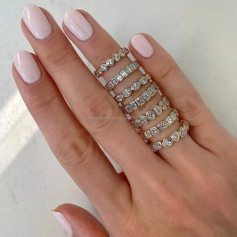 3.50mm Minimalist Matching Band Full Eternity Bezel Set Wedding Ring East West Style Oval Cut Sterling Silver Moissanite