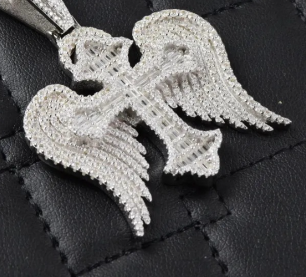 3.55 Carat 925 Sterling Silver Iced Out Angele Cross Pendant Moissanite VVS Diamond / Hip Hop Diamond Pendant
