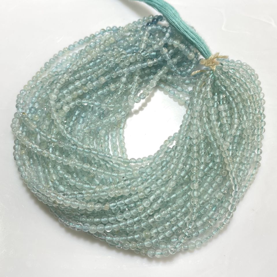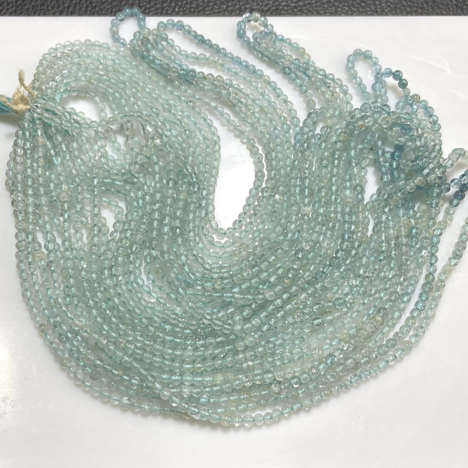 3.5MM Aquamarine Smooth Round Shape Beads Natural Gemstone Plain Beads, Wholesale Beading Supplies