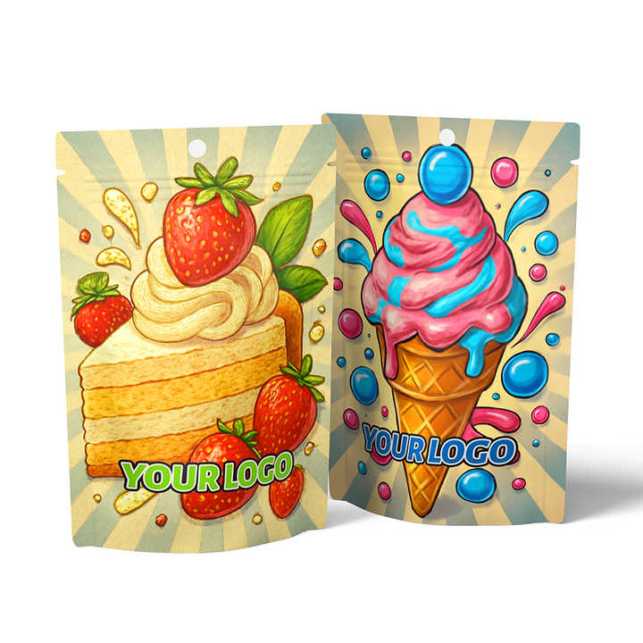 3.5g 7g 28g 1lb Mylar Bag Stand up Pouch Holographic Colorful Printing Custom Design Plastic Packing Food Storage Packaging