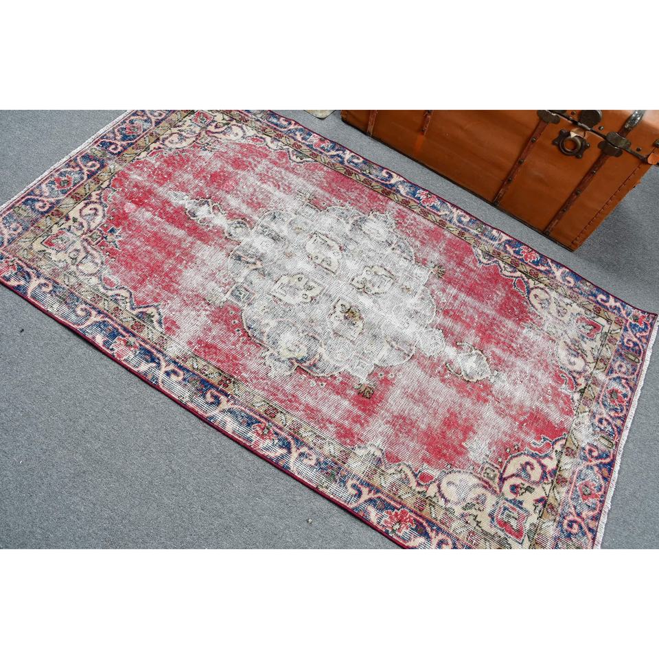 3.5x6.2 ft Turkish Rug, Rug, Red Camouflage Rug Wool