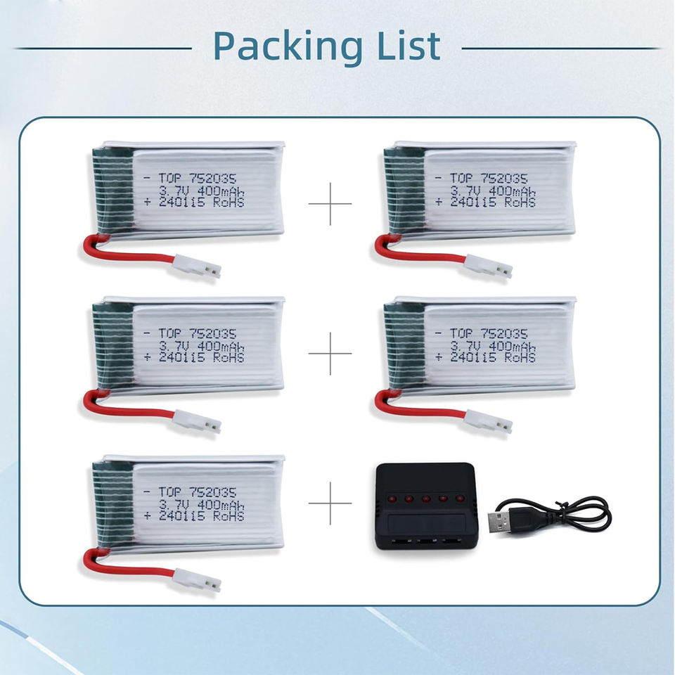 3.7V 400Mah Lipo Battery - 5Pcs Drone Batteries with 5in1 USB Charger for Quadcopter Parts Aircraft Drones Lithium Battery