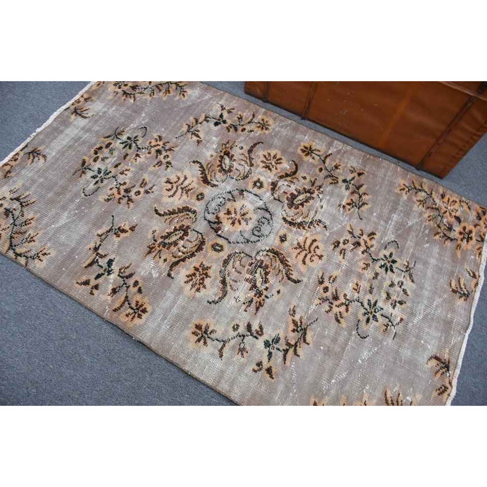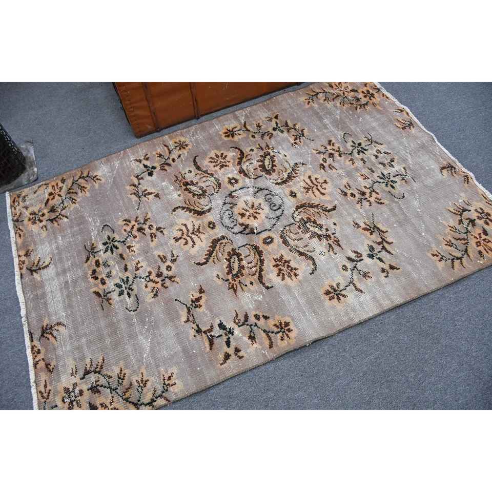 3.7x5.9 ft Rug, Turkish Vintage Accent Rug, Brown Wool Rug