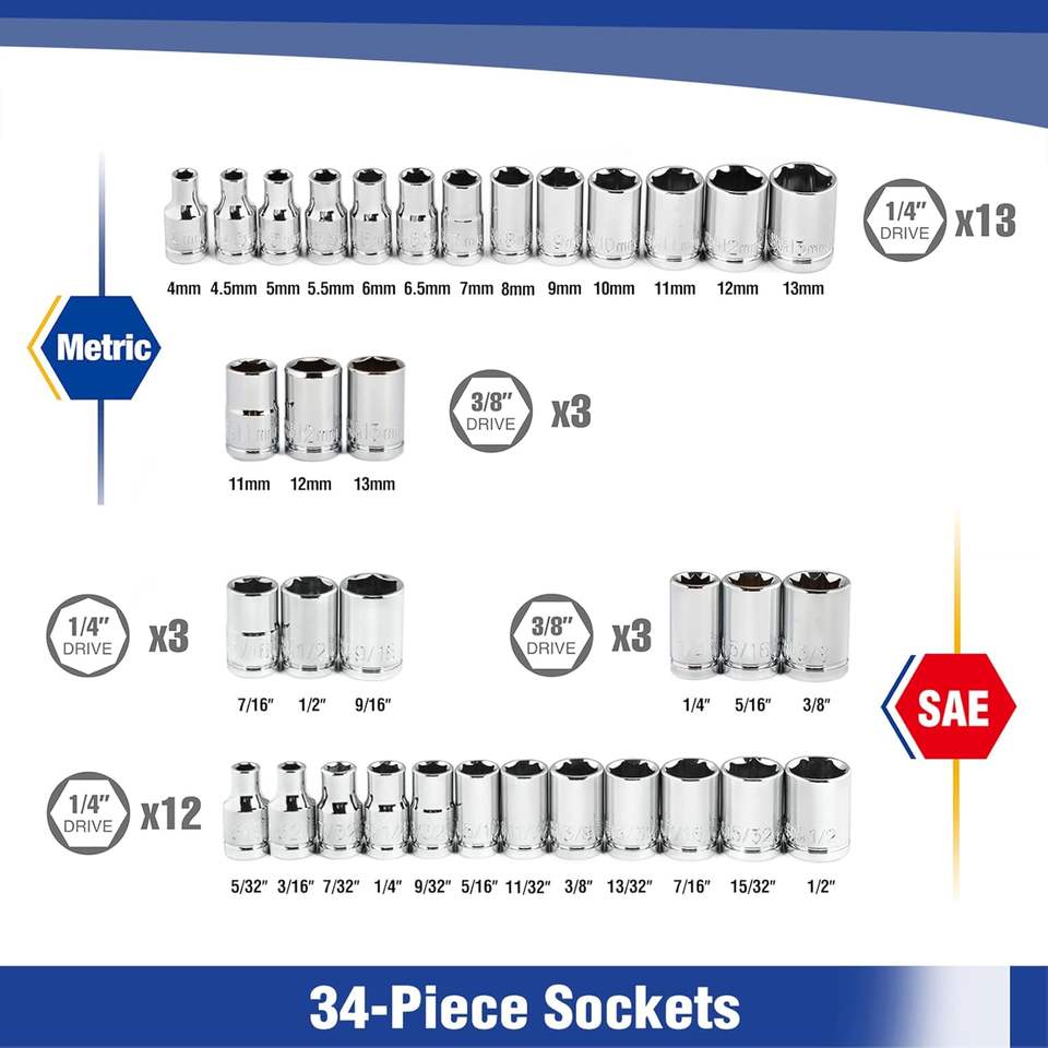 3/8 Inch Hex Bit 2" X 5" Universal Multi-function Power Nut Driver Impact Wrench Socket Tools Set with Ratchet Handle