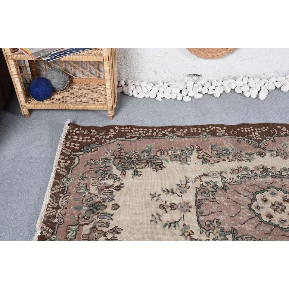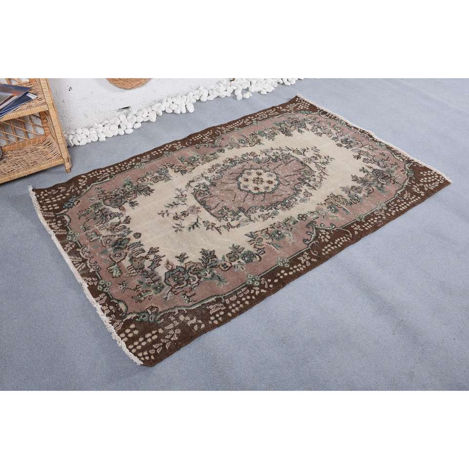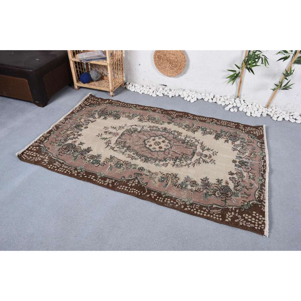 3.8x6 ft Rug, Turkish Rug, Vintage Brown Wool Plants & trees Rug