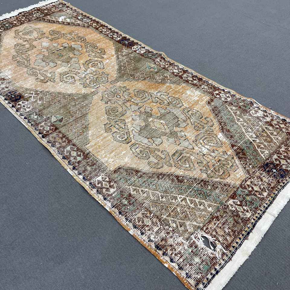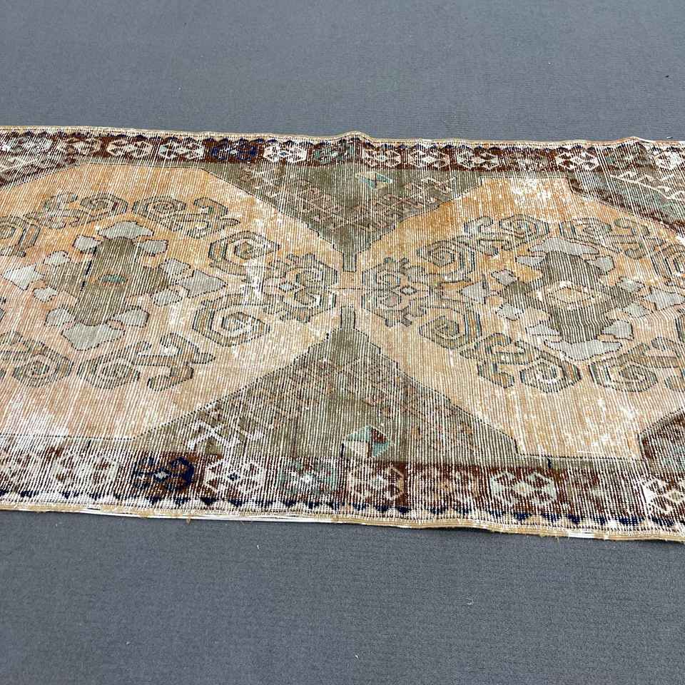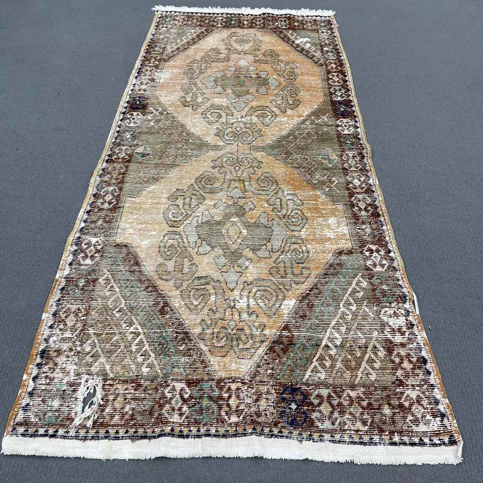 3.8x9.3 ft Turkish Rug, Brown Plants & trees Vintage Rug Wool