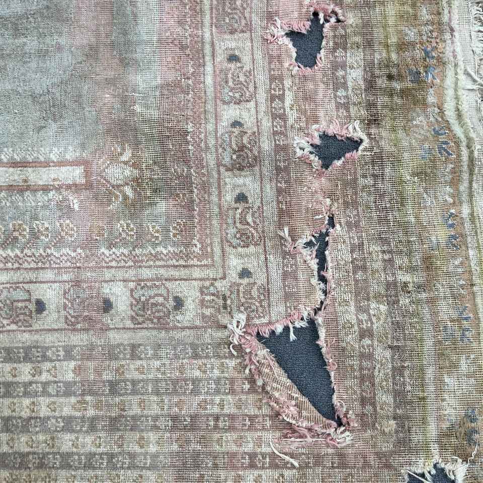 3.9x5.8 ft Rug, Turkish Vintage Rug, Brown Blue Check Wool Rug