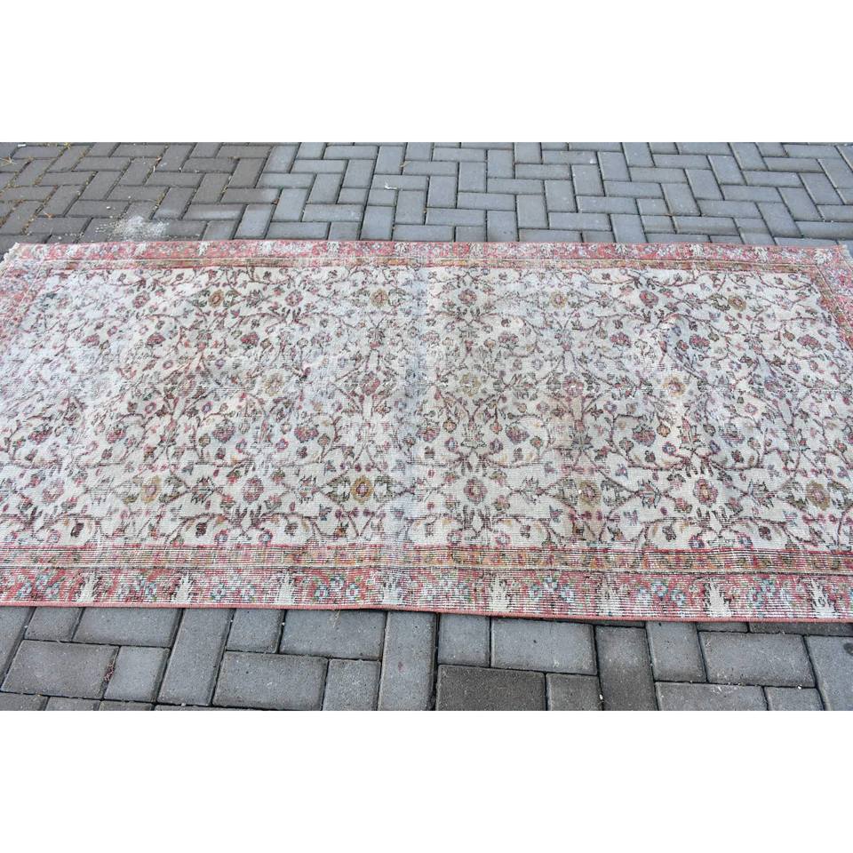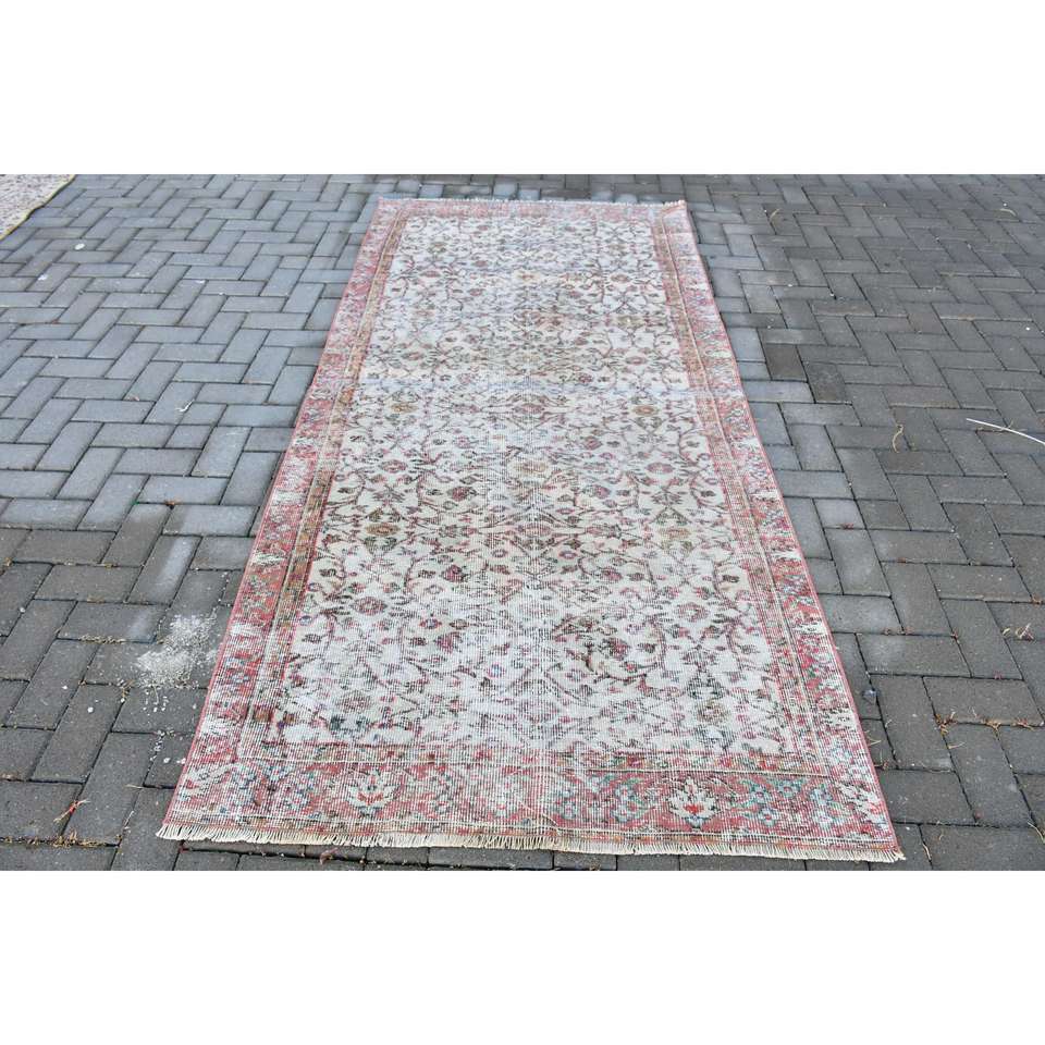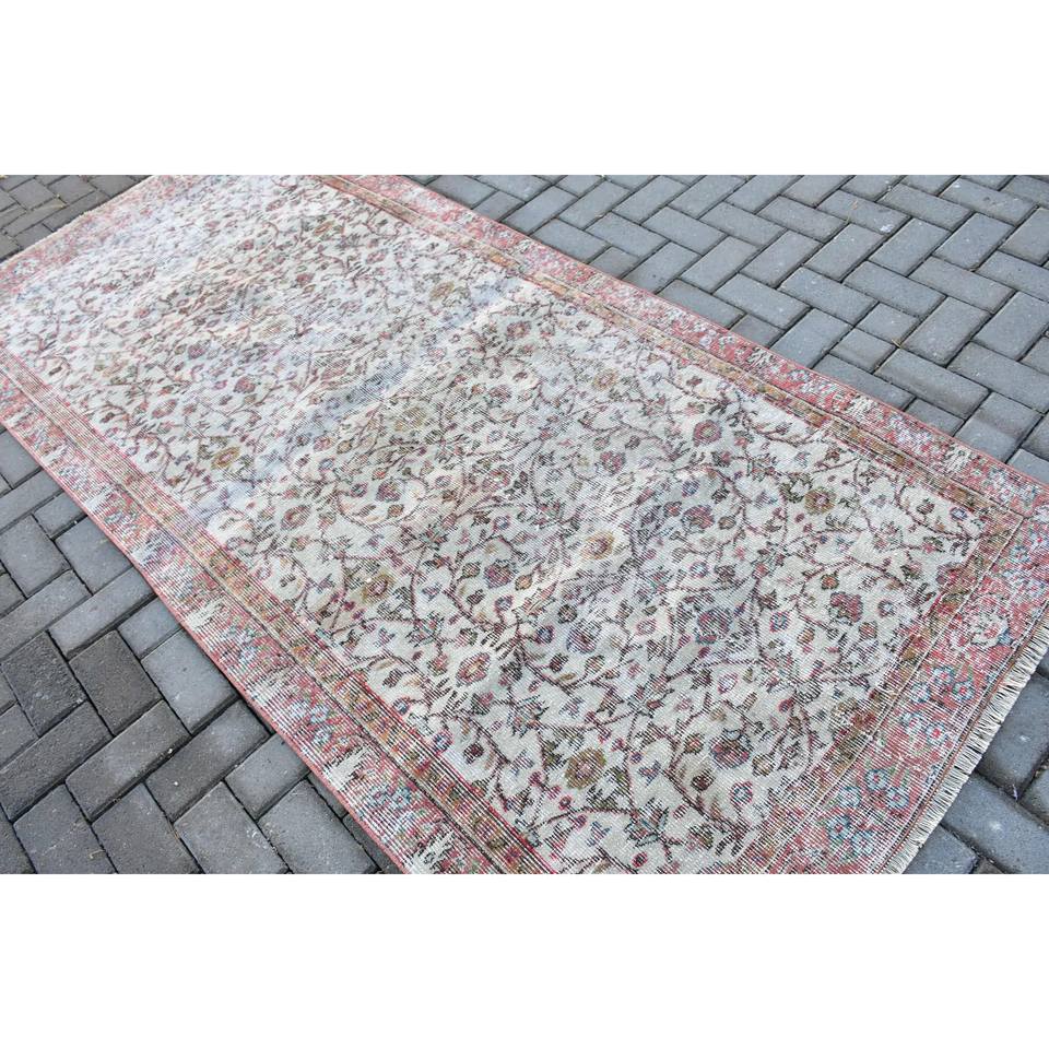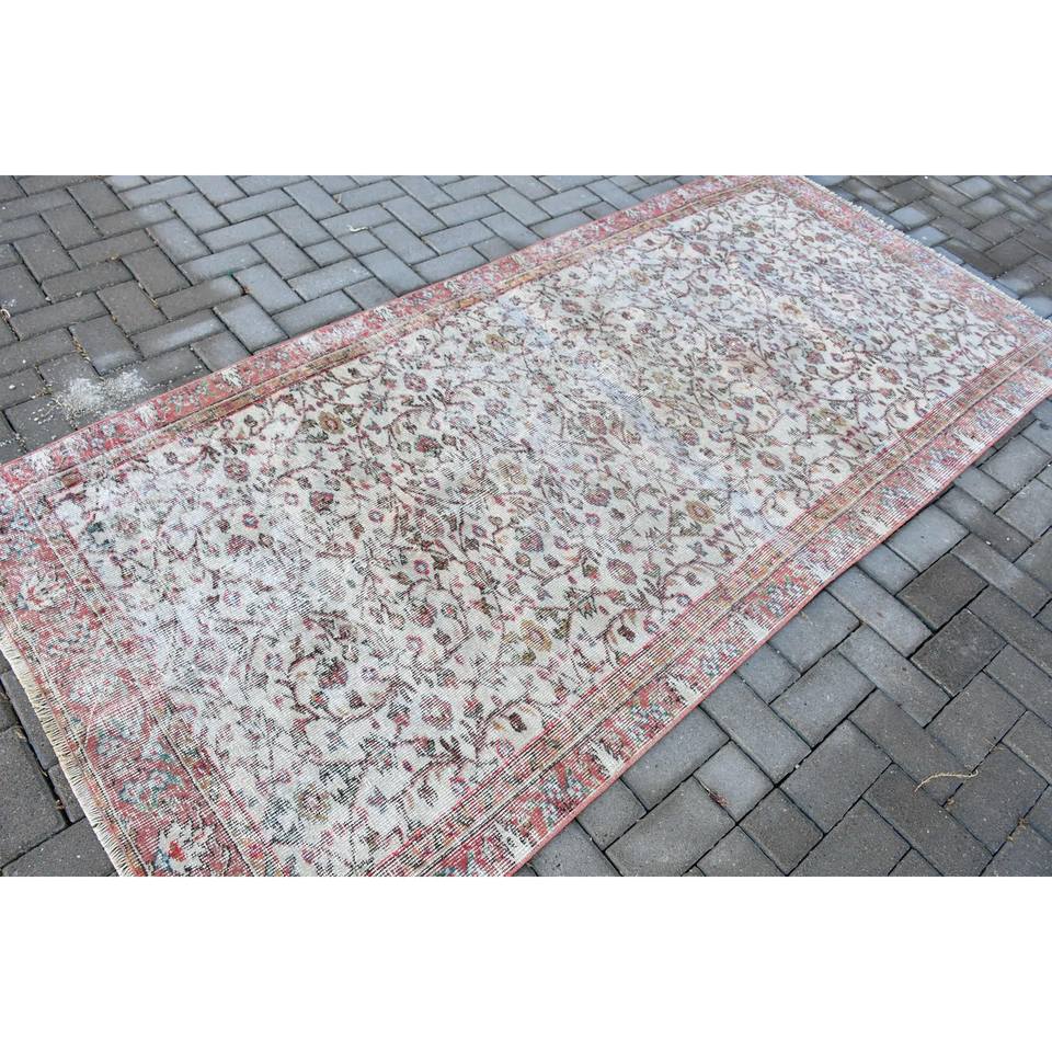 3.9x8.5 ft Turkish Rug, Vintage Rug, Red Plants & trees Wool Rug