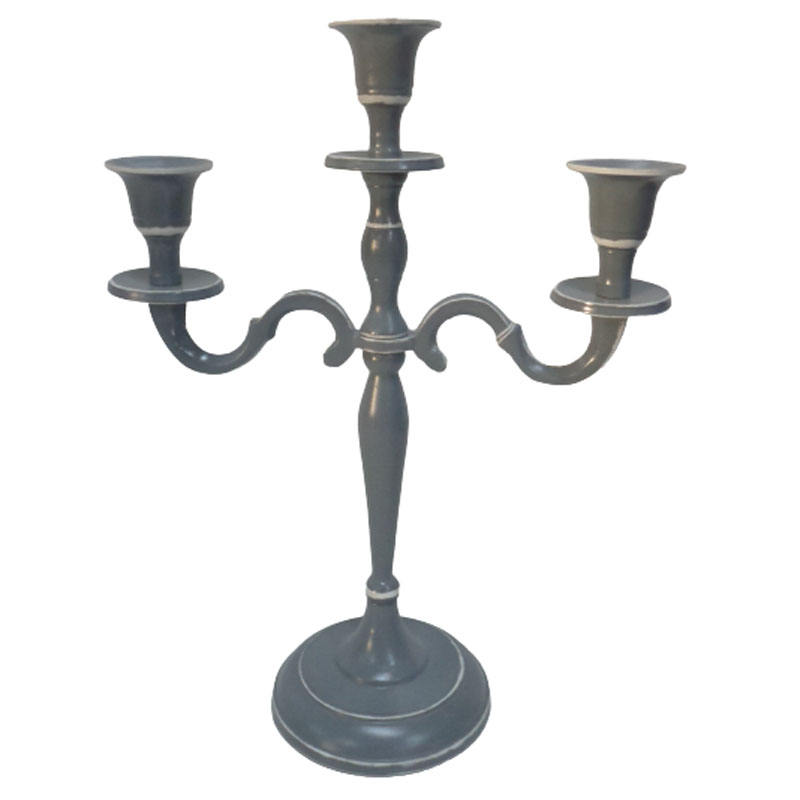 Antique Nickel Finish Iron 3-Arm Candlestick Holder for Hotels Weddings Christmas Decorations Table Top Decorative