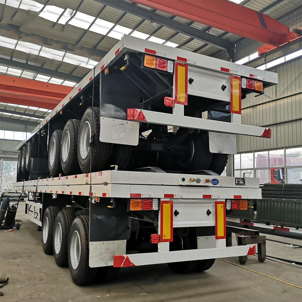 3 Axle Low Flatbed Semi-trailer with Hydraulic Climbing Ladder and High-strength Steel Frame