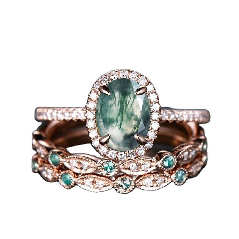 Women's Fancy Design Agate Moss Wedding Band Set Fine Jewelry for Party or Wedding Valentine's Day Gift-Wholesale Bulk
