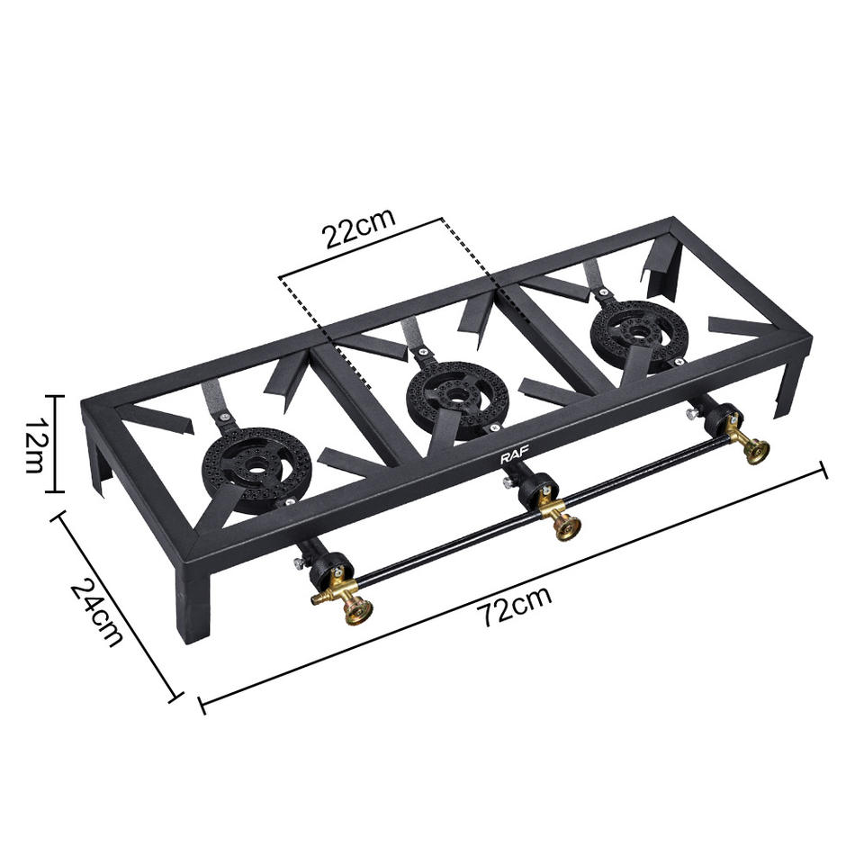 3 Burner Iron Camping Stove Portable Gas Stove Black Cooker for Outdoor Barbecue Grilling