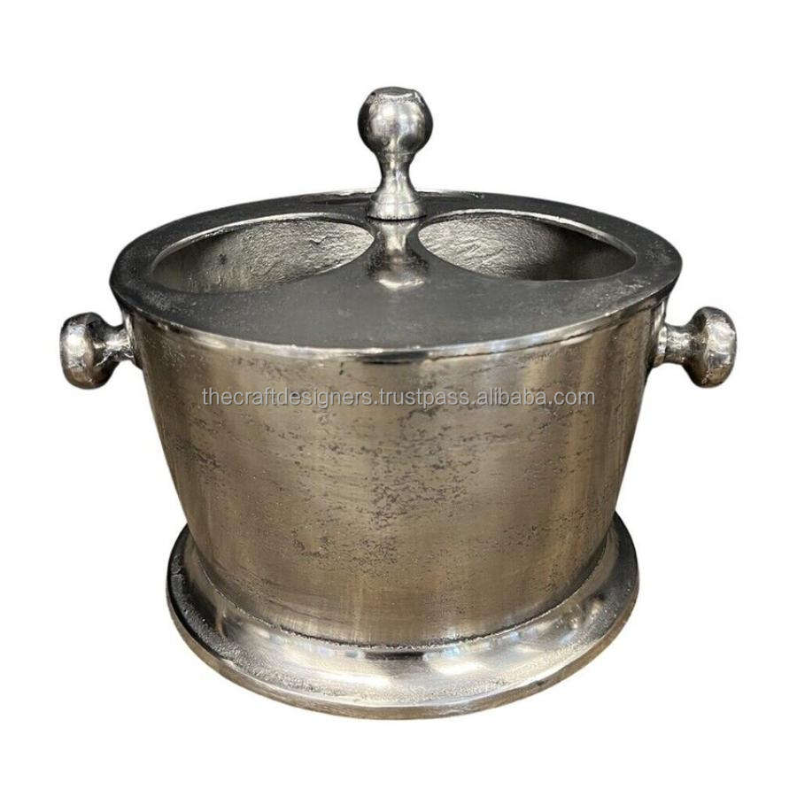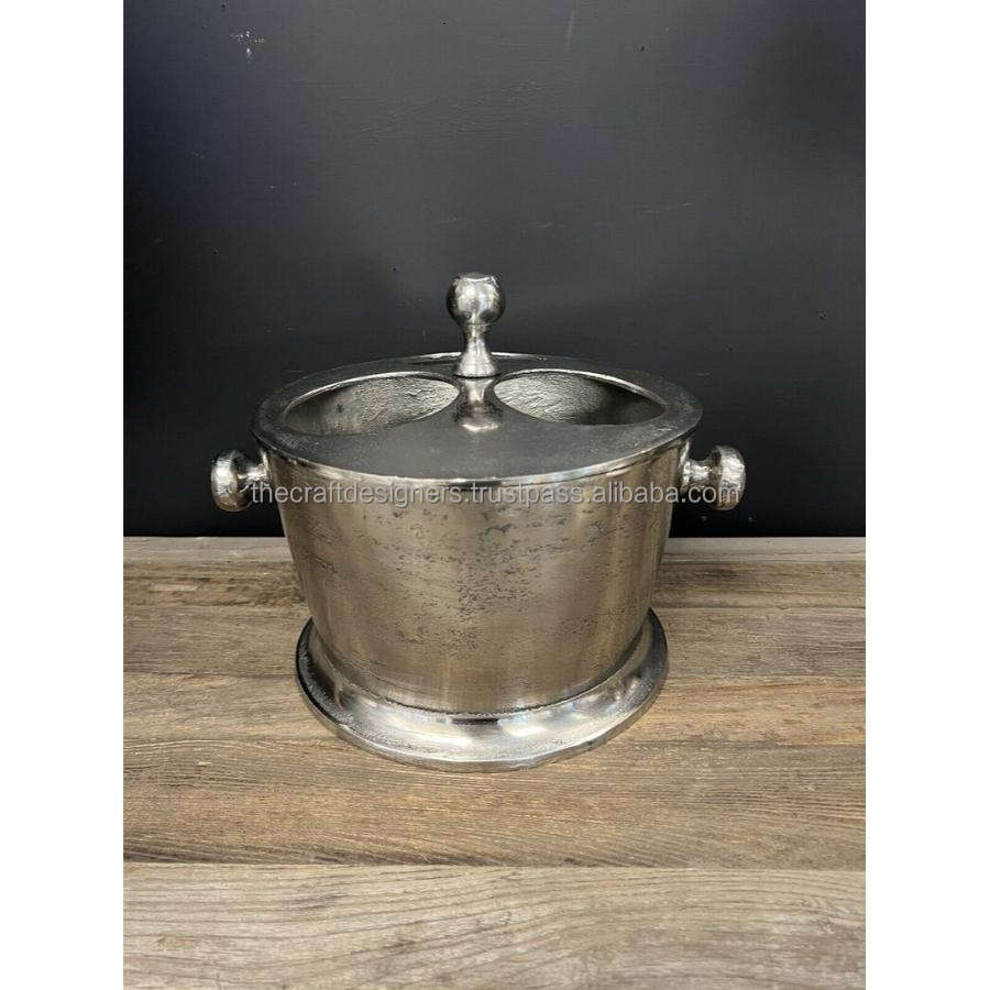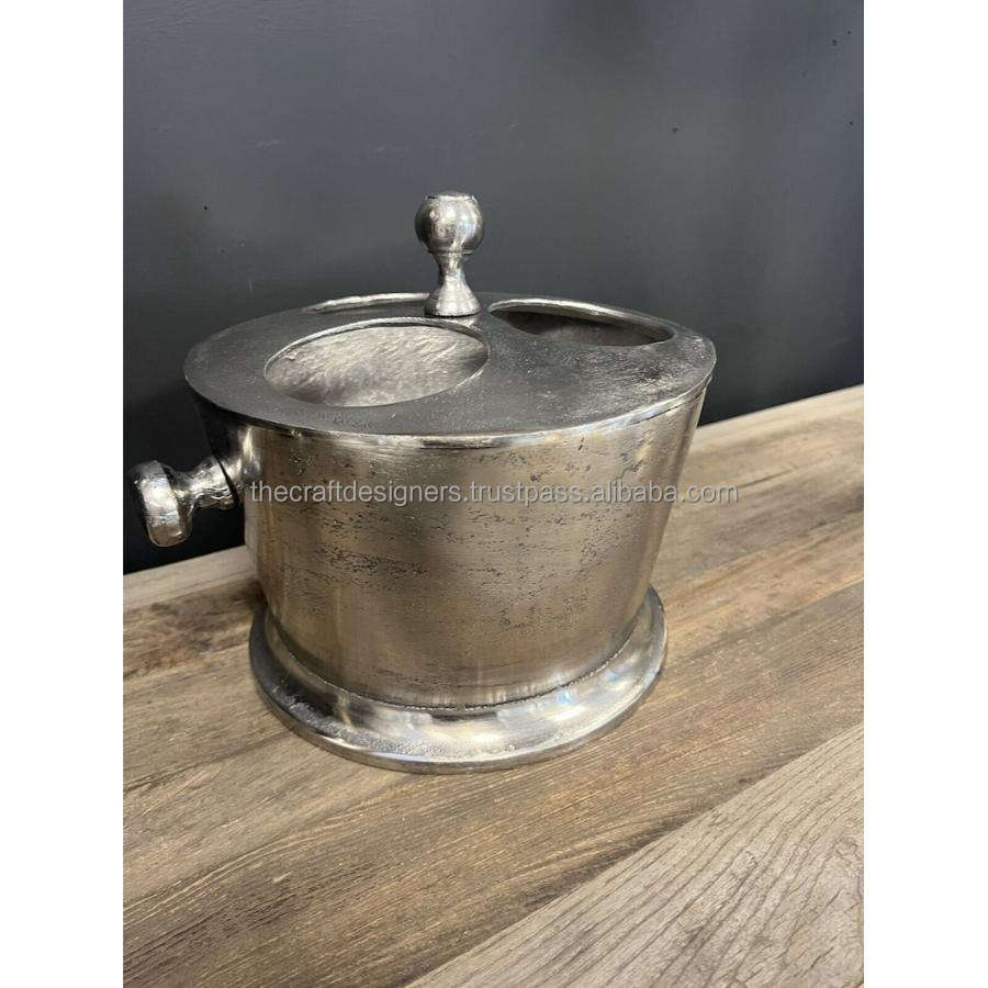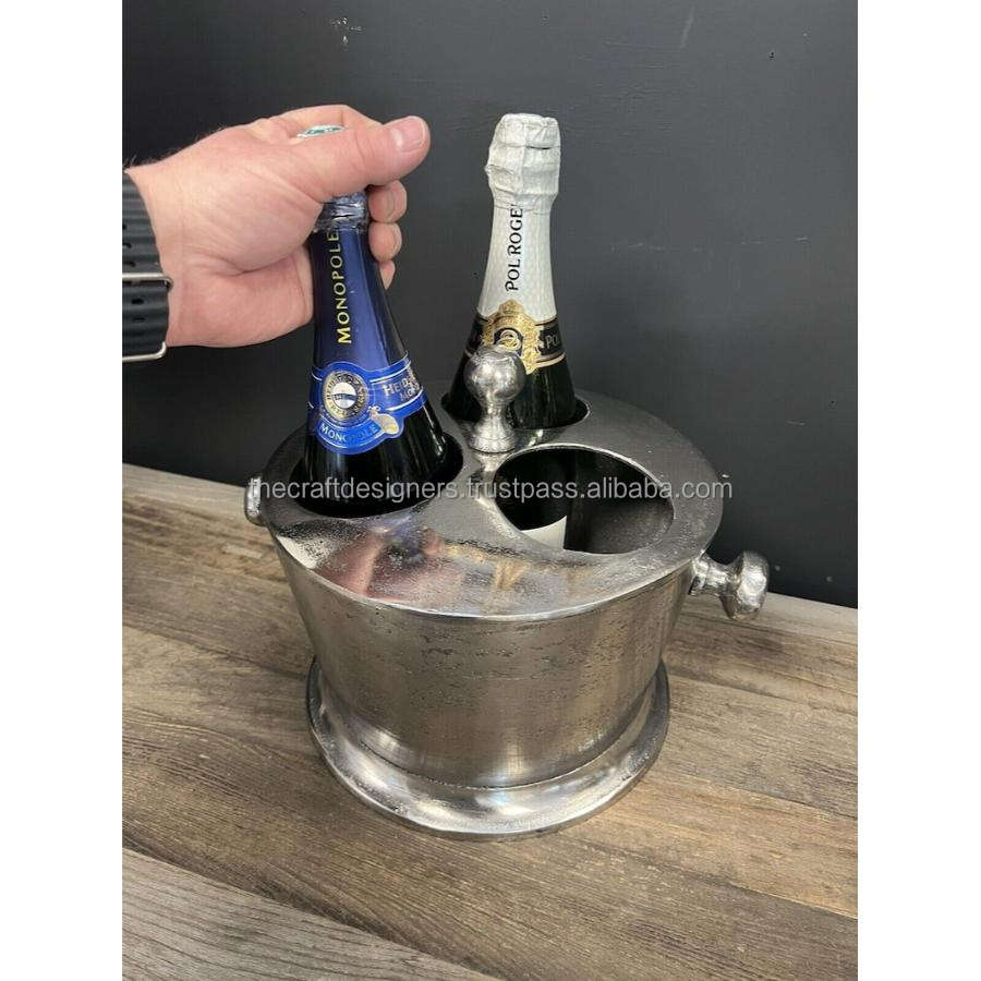3 Champagne Ice Bucket Bottle Stand For Parties Cast Aluminium Best Selling Wine Chiller With Lid Silver Beer Cooler Made-India