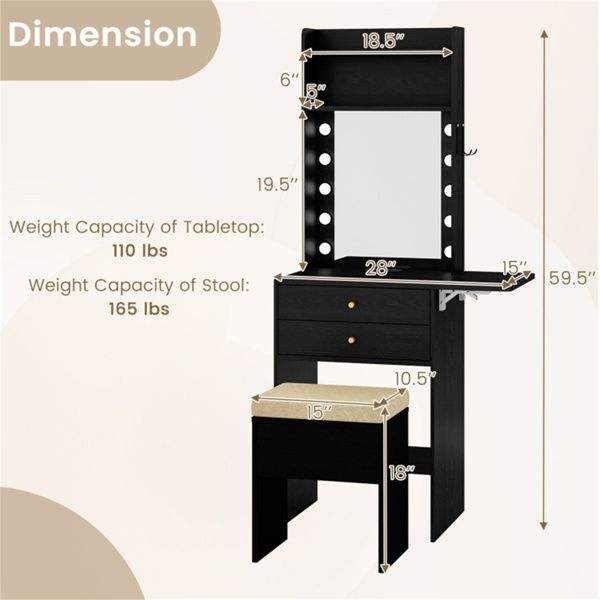 3 Color LED Lighted Foldable Makeup Table Set Vanity Desk Charging Station Cushioned Stool Various Colors for Your Makeup