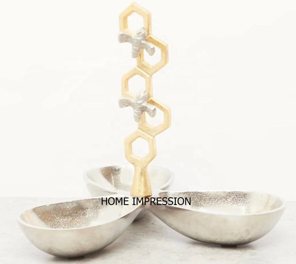 3 Compartment Honey Design Handle Bowls Modern Decorative Fancy Designer 3 In 1 Silver Shape Bowl In Reasonable Price Supply