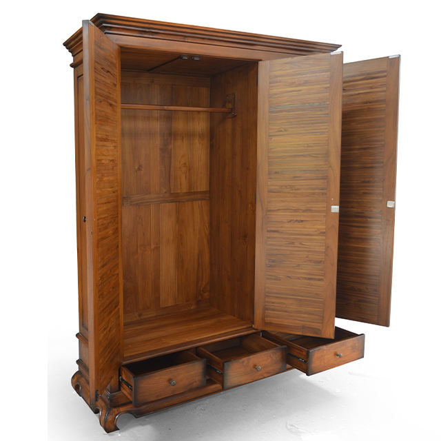 3-Door Teak Bedroom Furniture for Home Use Elegant Wardrobe