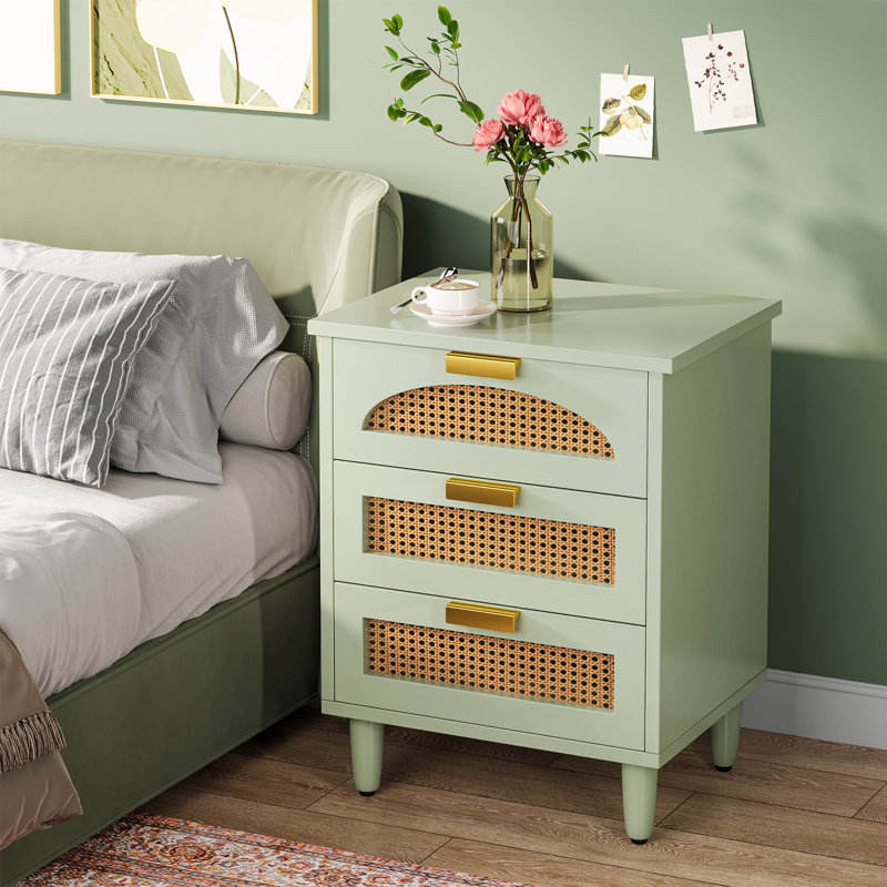 3-Drawer MDF Rattan Nightstand with Bamboo Accents Modern European Minimalist Style for Bedroom Hospital Storage in Apartments