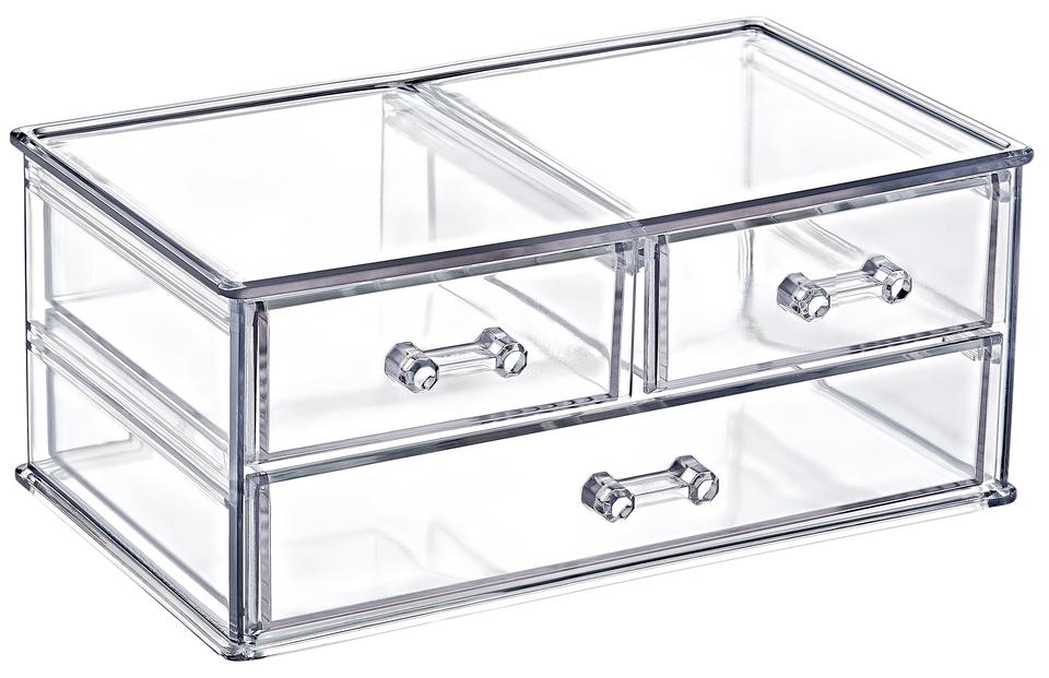 3 Drawer Rectangle Clear Acrylic Eco-Friendly Modern Makeup Jewelry Storage Box Multi-Purpose Organizer for Vanity Desk Bathroom