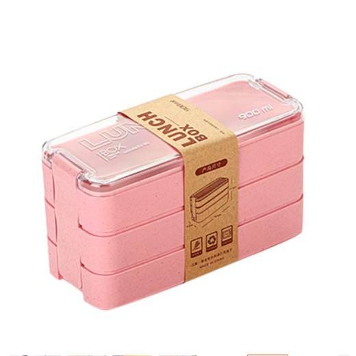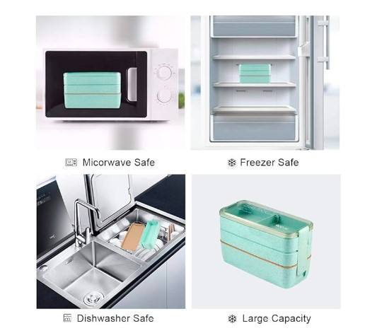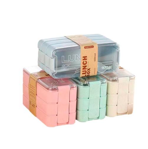 3-In-1 Compartment Wheat Straw Bento Box Leakproof Stackable Meal Prep Lunch Containers