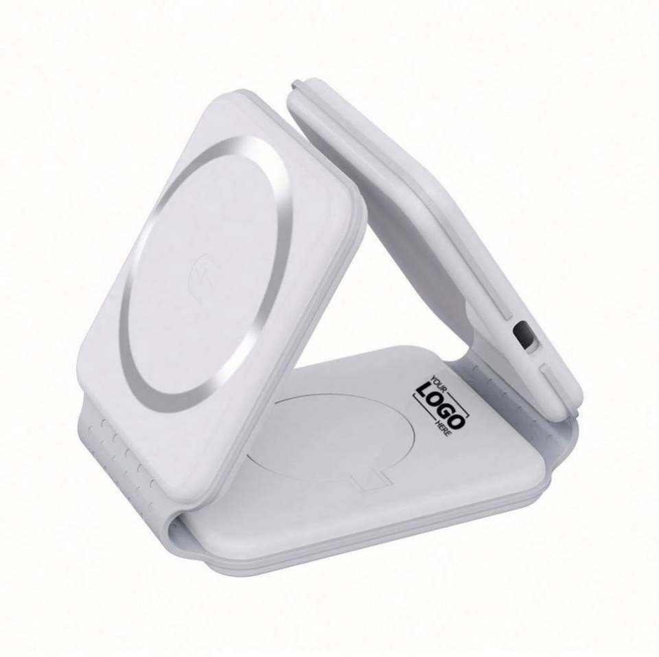 3 In-1 Durable Wireless Charging Pad PVC Material Custom Printed Magnetic Foldable Charger Station Fast Travel Promotional