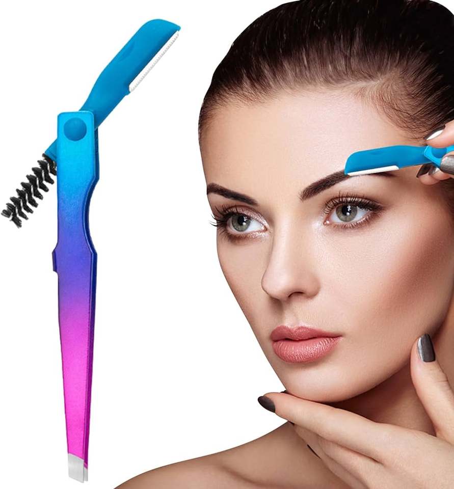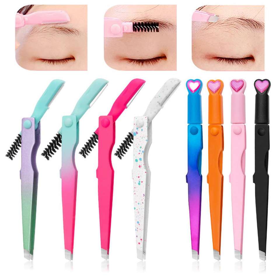 3 in 1 Eyebrow Clip Eyebrow Trimmering with Brush Multifunctional Stainless Steel Colorful Eyelash Tweezers Beauty Makeup Tools