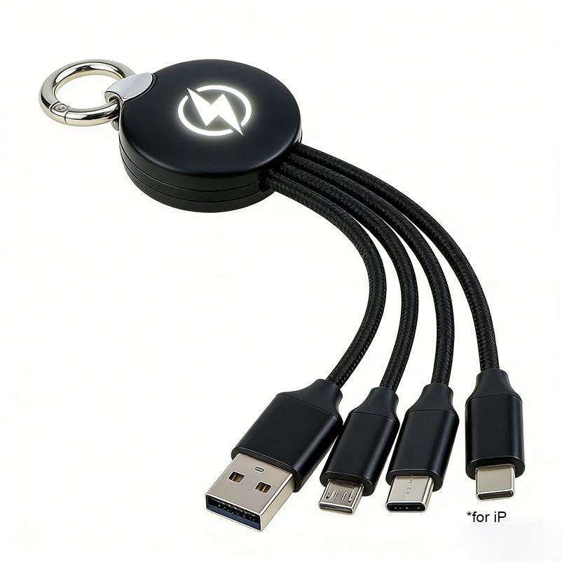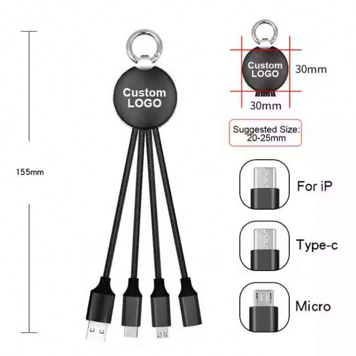 3-In-1 Multi-Function Fast Charging Keychain Usb Charger Cable With Led Luminous Logo Wholesale Custom Promotional Gifts