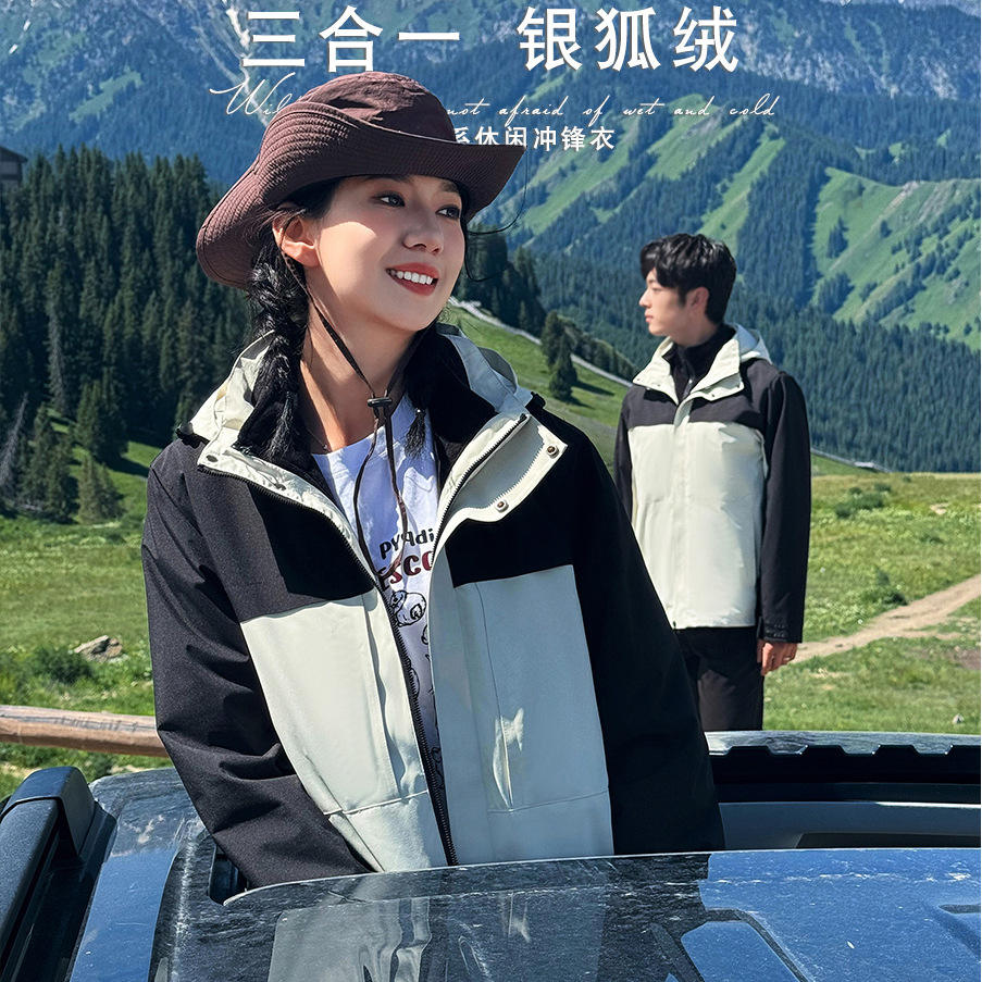 3 In 1 Silver Fox Fur Lined Outdoor Jacket Waterproof Windproof Removable Liner Hiking Mountaineering Unisex