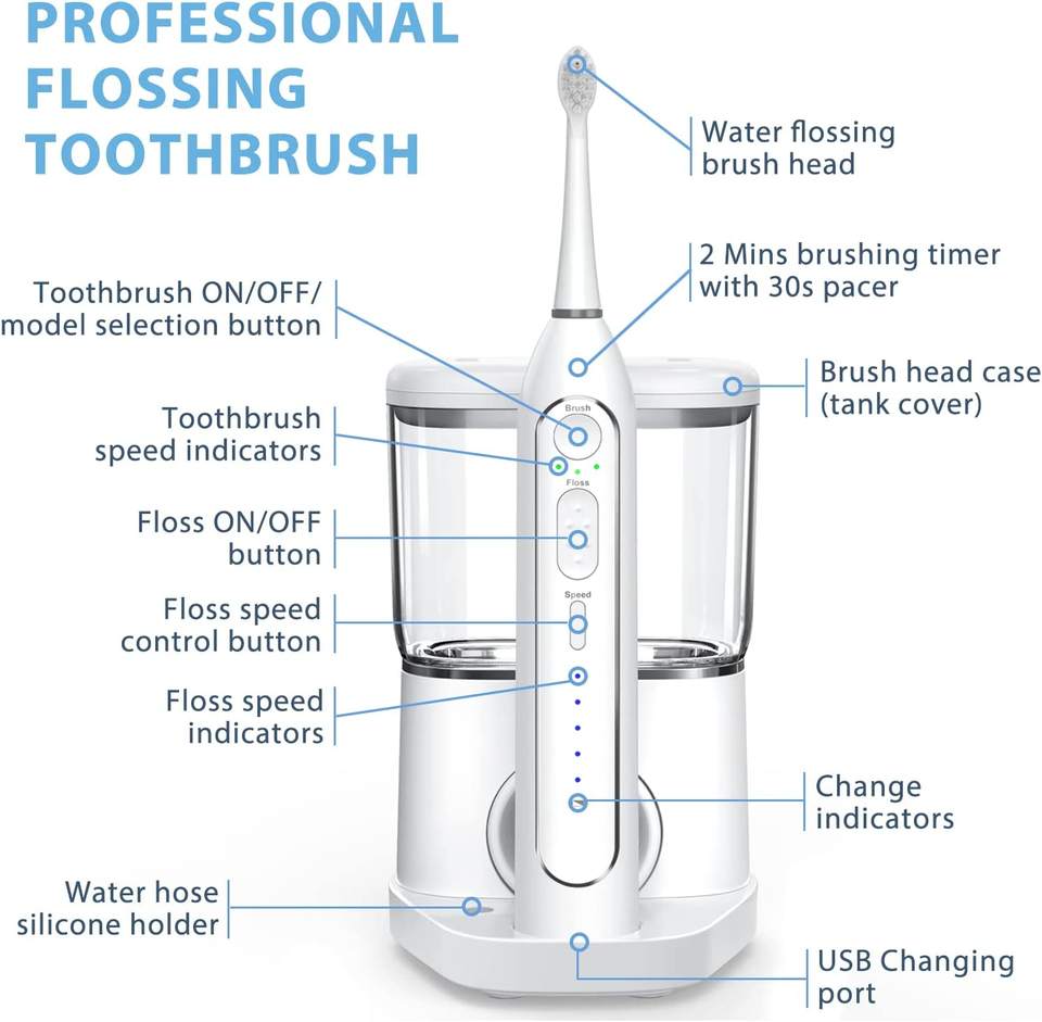 Electric Toothbrush and Water Flosser Combo in One