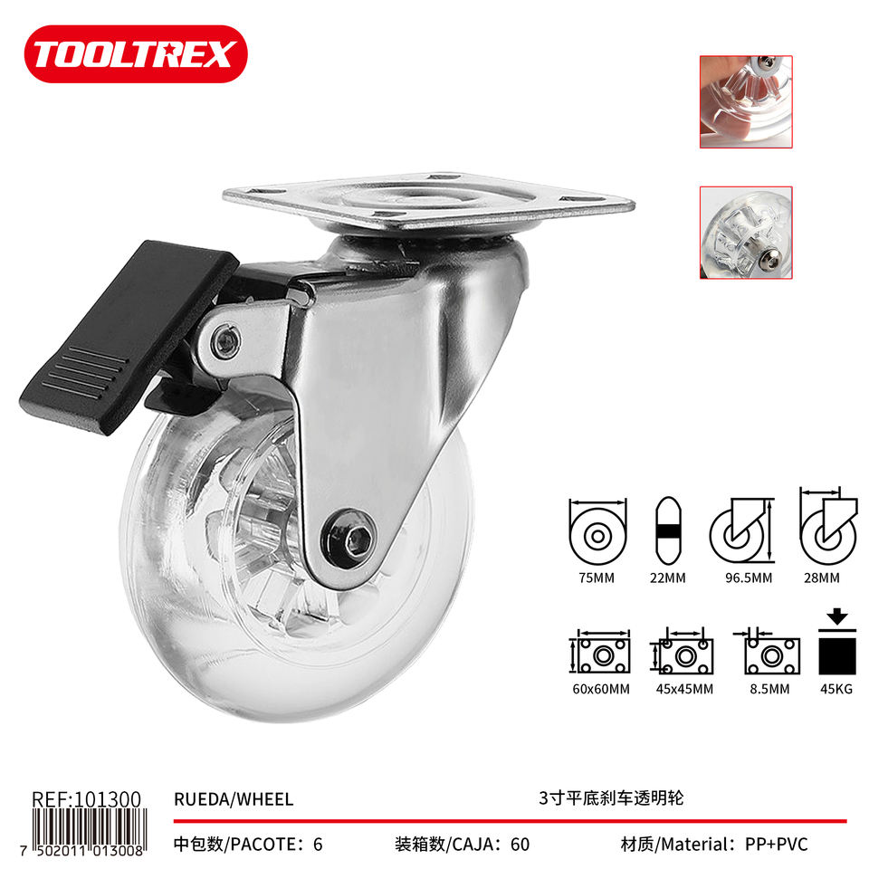 3 Inch Flat Bottom Brake Transparent Wheel for Furniture Casters
