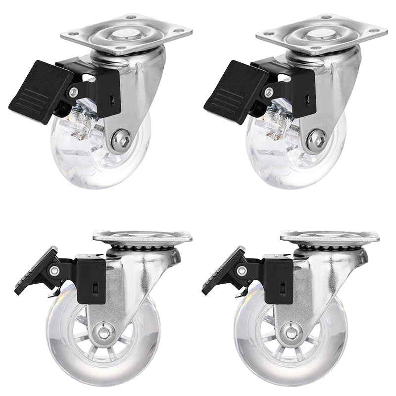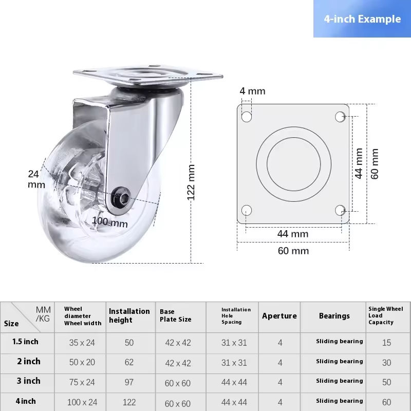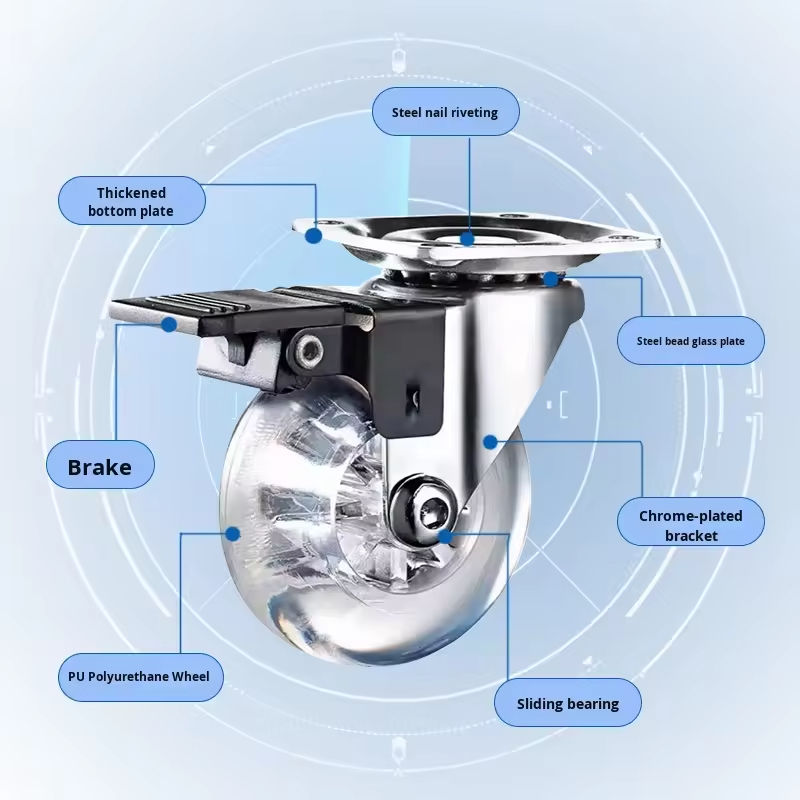 3-Inch Lightweight Furniture Caster Universal Wheel Base Smooth Crystal PU Fully Transparent Wheel Silent Plastic