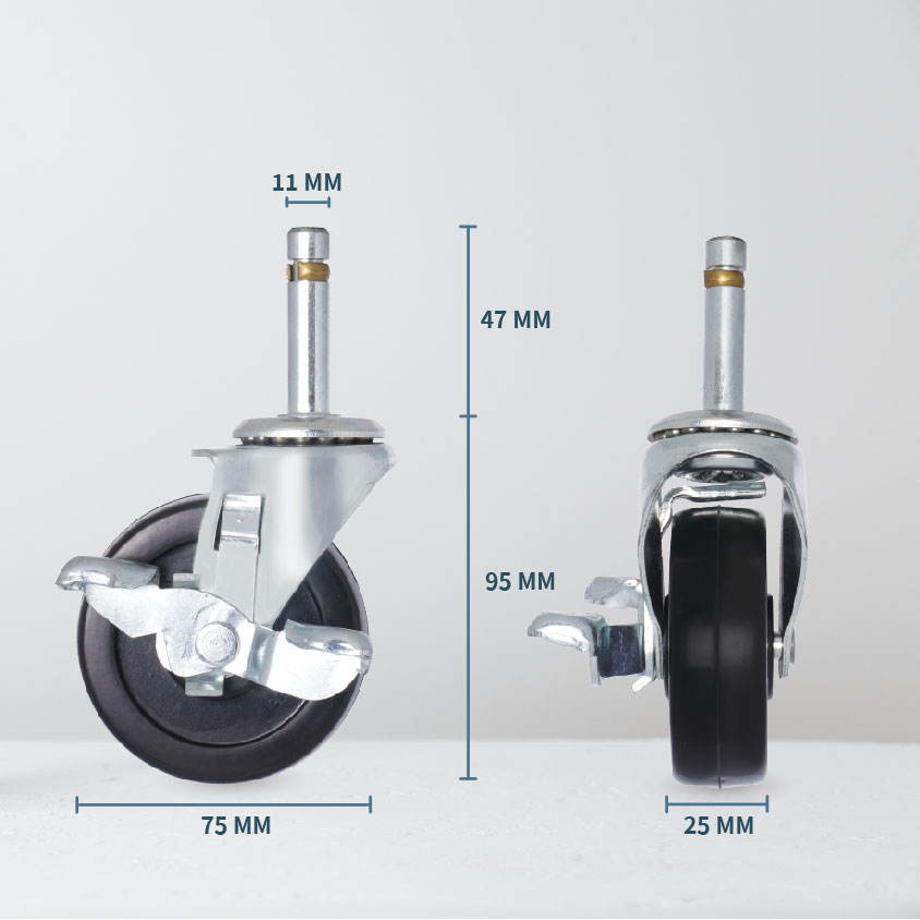 3 Inch PVC Caster Black Side Brake Wheels with Grip Ring Stem 11X47MMProduct name